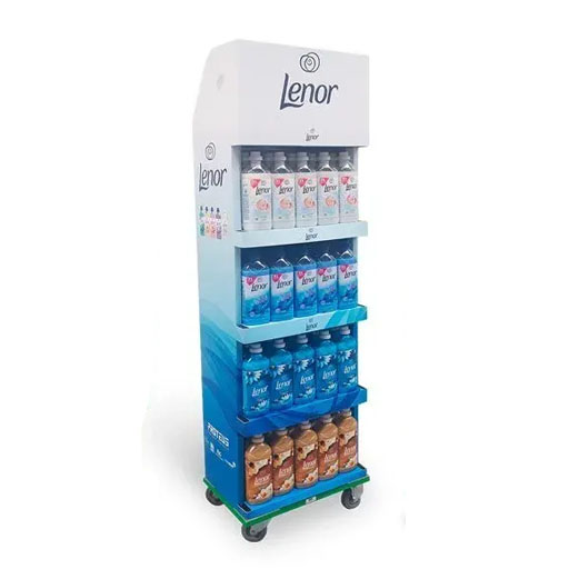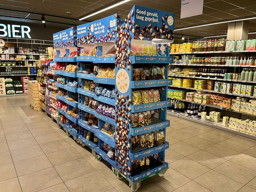 Bu sistem sayesinde, %85’e kadar karton ve CO2 tasarrufu sağlanır. Raflar mağazada sabit kalır, değiştirilen tek şey ise yalnızca 1 kg ağırlığında dijital baskılı karton dış çevresidir.